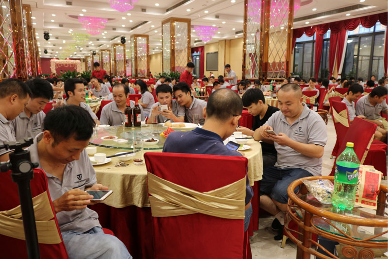 晚宴进行中,总经理李智先生和副总经理鲁永红先生挨桌去为每一桌的职工敬酒,感谢每一位职工多年来的辛勤付出。