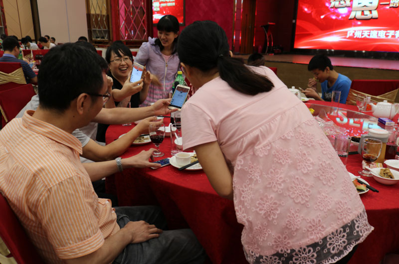 最激动人心的要数现场建微信群发红包环节!主持人以天逸的生日“0808”作为进群口令,建群后首先由李总、鲁总两位给大家发特大红包,现场气氛一度燃起,好不热闹!