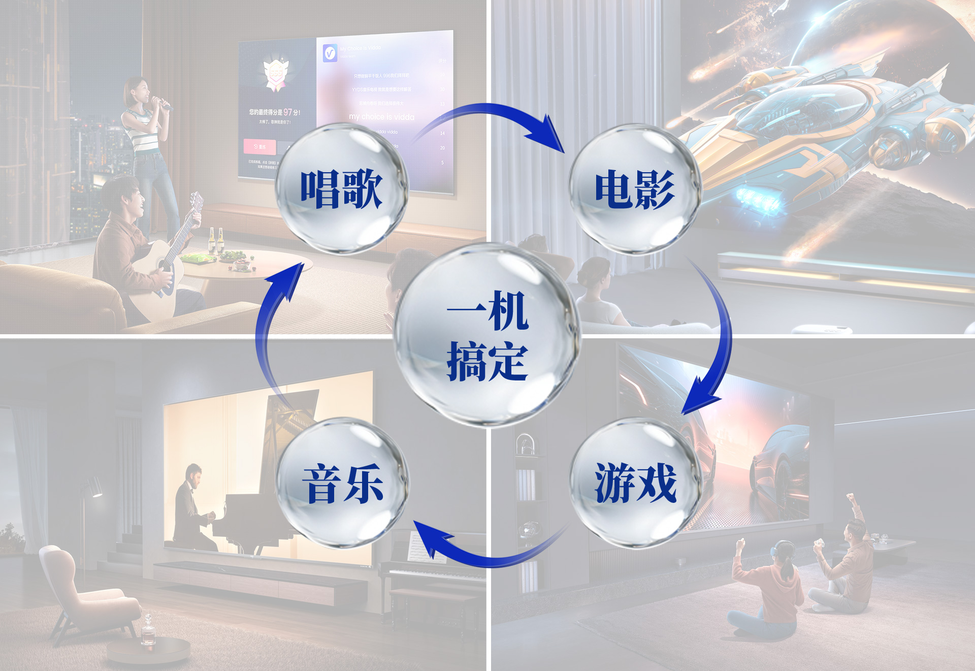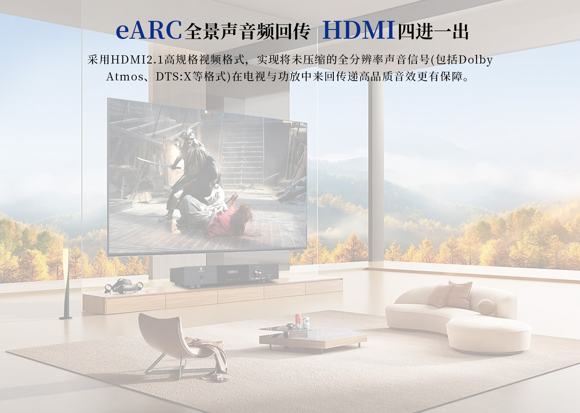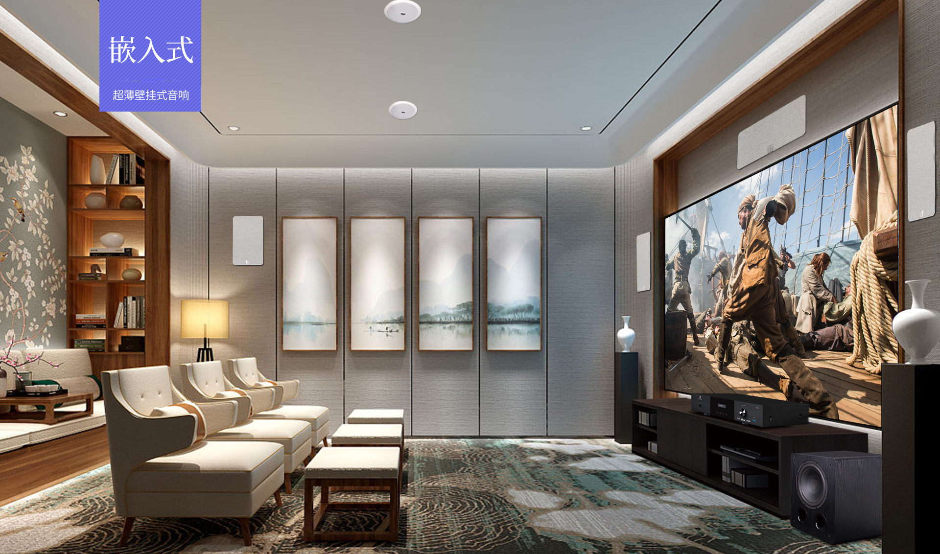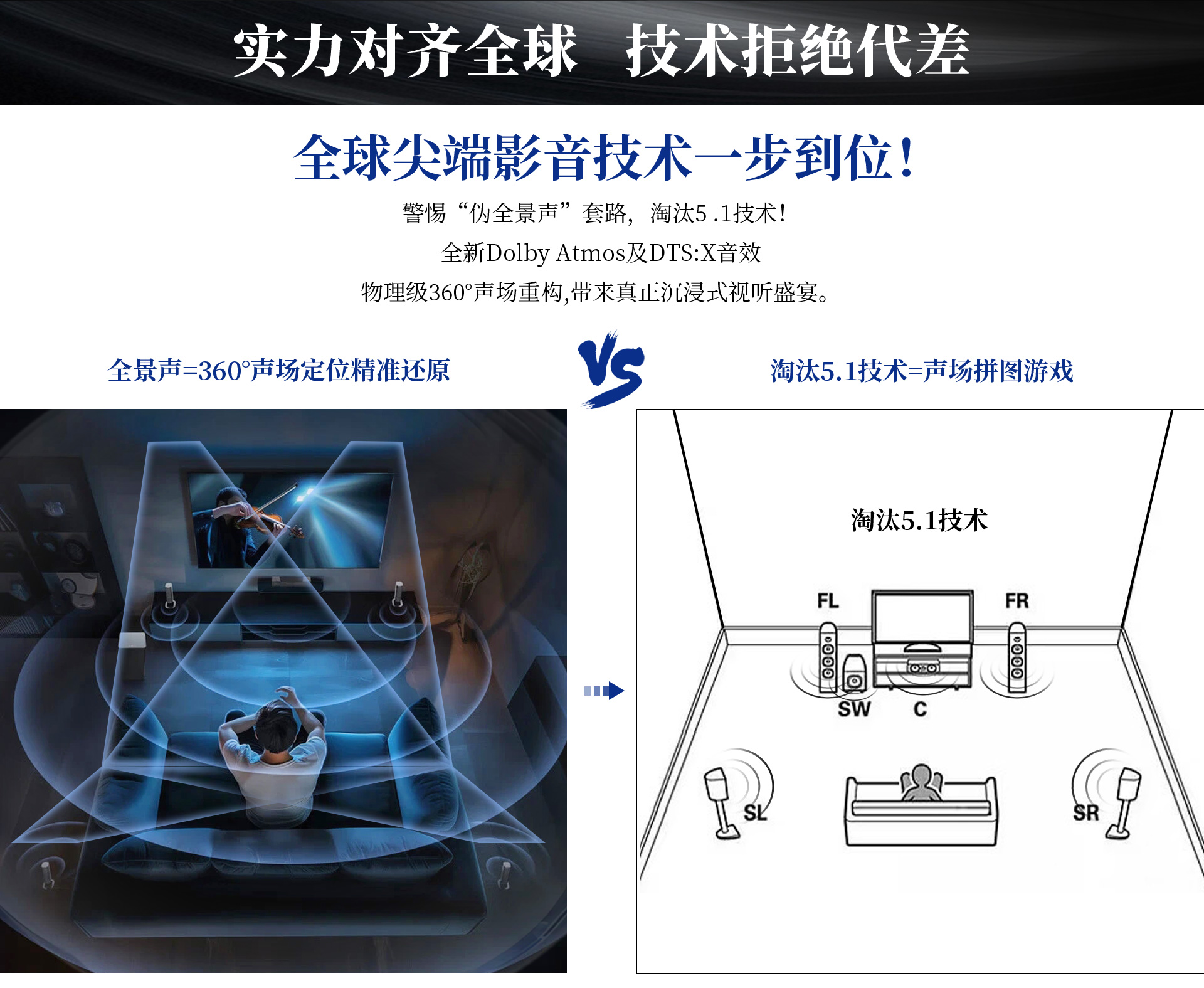 三、声音特点 尊享七号的5.1.2全景声影K系统通过构建360°三维立体空间,打造全方位包裹感,让人沉浸其中。各声效定位精准、层次分明,战争片中爆炸、建筑坍塌等大动态场景的驾驭都游刃有余、低频下潜深厚且富有弹性,中频人声保持清晰有力通透质感,金属的摩擦声、玻璃的脆裂声等环境音处理更是细腻真实,每个细节都能够勾勒出强烈的画面感,构建出极具冲击力、沉浸真实的观影现场。