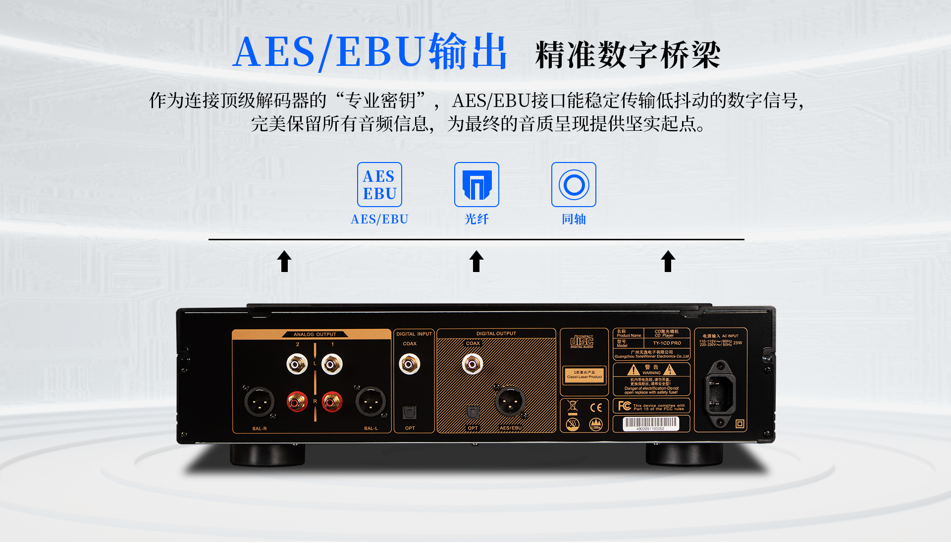 | 产品型号:TY-1CDPRO | 信噪比:≥123dB(A计权,BAL out) |