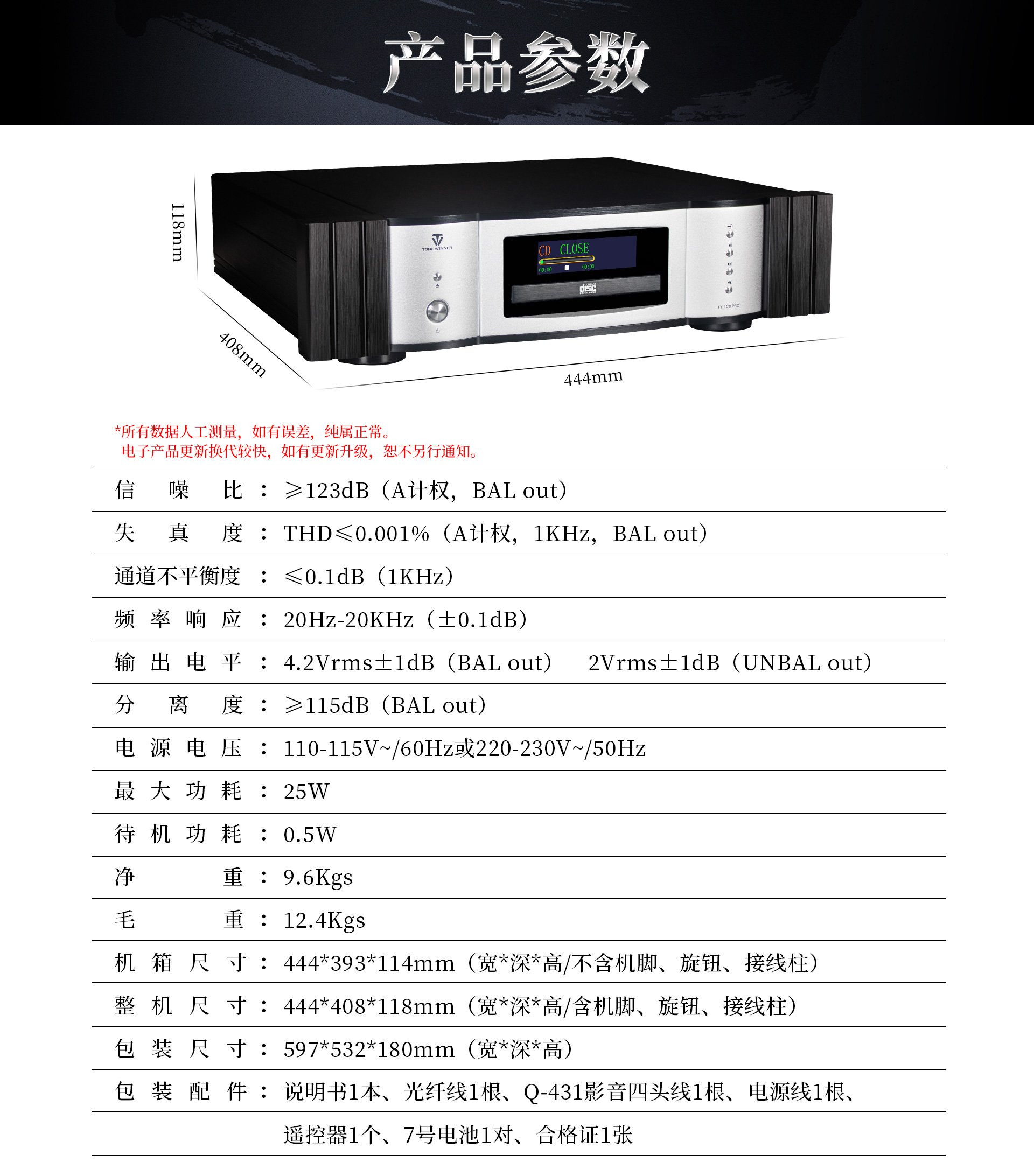 | 失真度:THD≤0.001%(A计权,1KHz,BAL out) | 通道不平衡度:≤0.1dB(1KHz) |