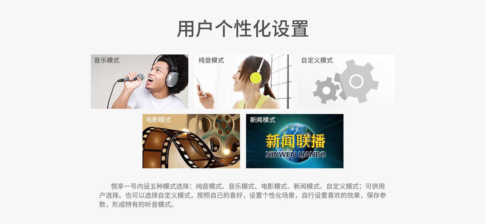 四、声音特性 AT-01S的每一个声道均采用独立腔室,确保了每个声道声音的分离度。所有的喇叭均采用高灵敏度、低失真度的设计,音质一流,声音淳厚温暖,低音气势磅礴。 听音乐时悦享一号又会给你极强的音乐感染力,它的高音清晰顺滑,中音淳厚温暖,低音厚重有力、气势宏大。声场层次分明定位清晰、声音细节丰富又不毛糙,无论是看电影还是听音乐,悦享一号都能给你一流的视听享受。
