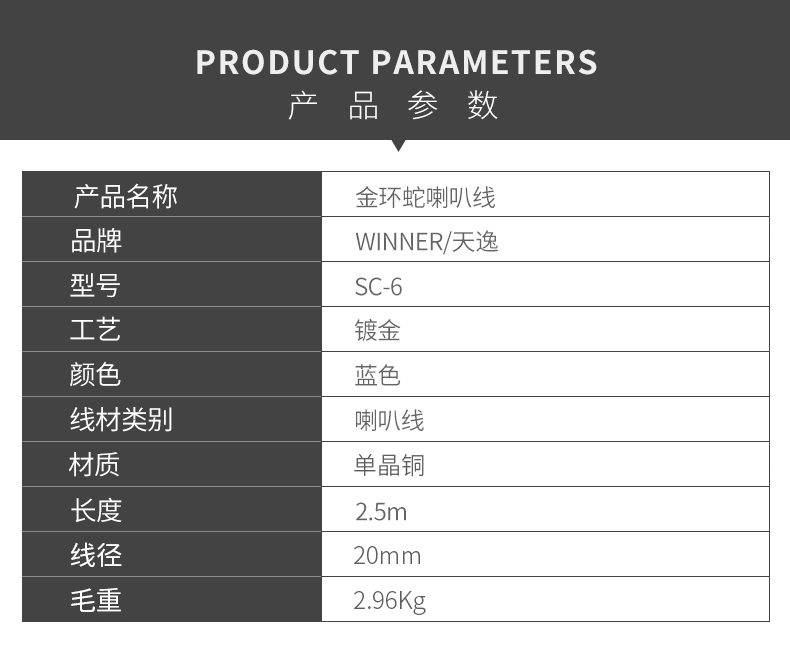 简介:金环蛇喇叭线是天逸成品发烧级喇叭线中的高端精品级线材,采用精选提纯度高达99.9999% 的多股单晶铜(6N OCC)导体。