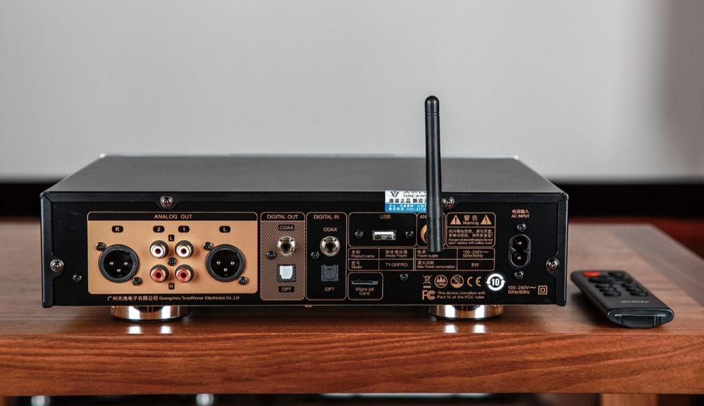 视线转向TY-i30PRO的背板,一组XLR平衡与RCA输出,光纤、同轴输入各一组,一组TF卡槽与USB接口。这些接口全面,能够兼容多种Hi-Fi音乐资源,实现无缝连接和播放。