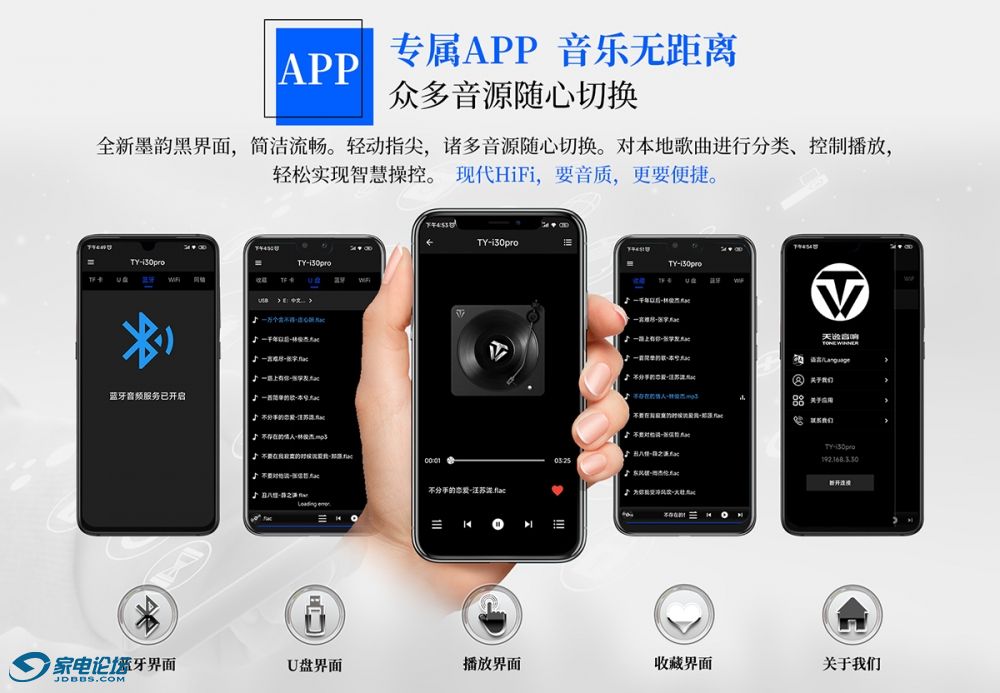 试听体验充分展现了TY-i30PRO作为高保真音源的魅力,它全面覆盖了中档网络数字播放机的核心功能,丰富的接口配置和直观易用的APP。