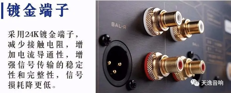 TY-1CD的输出接口均采用24K镀金端子,能减少金属接触面的微动腐蚀,进而减少接触电阻,增加电流导通性,同时能有效增强信号传输的稳定性和完整性,降低信号传输中产生的衰减值,避免高衰减值给高低频信号带来的不稳定,将信号损耗降到最低。