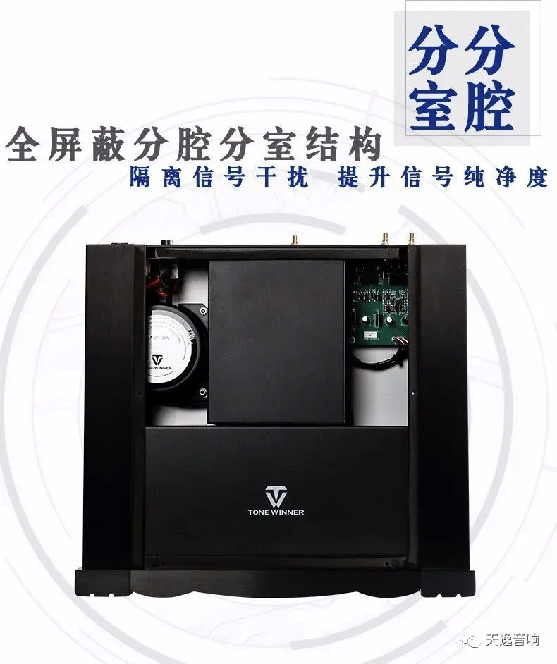TY-1CD做工精良,采用发烧友最为看重的分腔分室结构:电源、待机电源和机芯至于一个腔室,D/A转换置于另一个腔室,硕大的变压器至于单独的屏蔽罩内。各个部分单独做严密的分区域全屏蔽措施,在结构上最大程度地确保各个部分信号互不干扰,使信号纯净免受干扰,确保该CD机能输出高纯净音乐信号,为声音的细节和最大限度的减少音乐的背景噪声奠定了良好的基础。