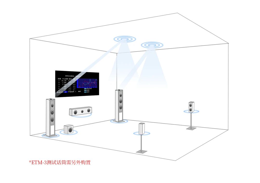 搭载全球五大全自动音频测试校正系统之一的ETQ全自动房间声学测试系统,这是获欧美多个品牌与商家高度认可的专业级技术,它能精准完成多维度房间声学声场测试,通过智能校准算法适配你的客厅空间。即便面对户型不规则、声学条件一般的复杂环境,也能一键优化出声场均衡的专业级效果,让杜比全景声、DTS:X的空间环绕感发挥到极致。