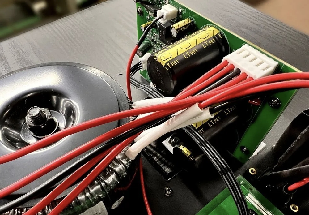 主板与功放板大多数电子器件均通过精挑细选,电路板皆在全自动无氧超声波贴片机上完美呈现。在电源储能滤波大水塘上,精选音质好、损耗小、充放电能力强、可靠性高的精品级音频专用电容,而储能电解容量更是高达30000μF;坐镇能源供应中心的是一只200VA的巨型新升环牛,这是目前国产音频功放类环牛的佼佼者,质量一流,噪声极低,为整机提供强劲充沛的动力之源!