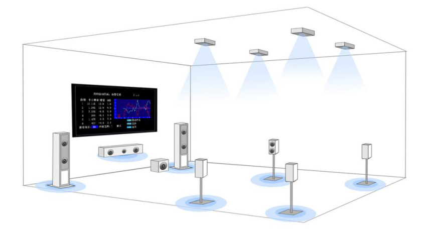 而当下,以绝大多数用户客厅or独立影音室的面积为30—40平为例计算,想要兼顾绝佳的影音体验和预算,9声道的扬声器布局是最常见的方案。