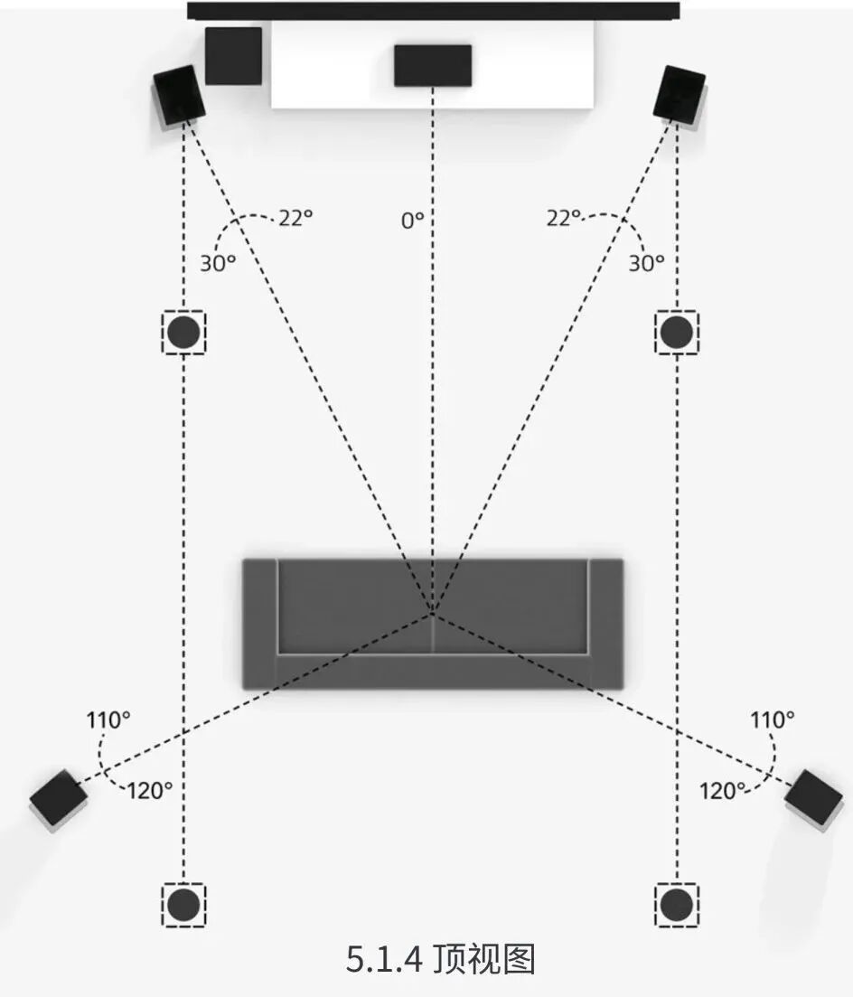 在实际的家庭影院定制工程中,受限于影音室面积大小和用户预算要求等,全景声家庭影院的搭建往往有5.1.2、5.1.4、7.1.2、7.1.4乃至更高的扬声器布局设计。