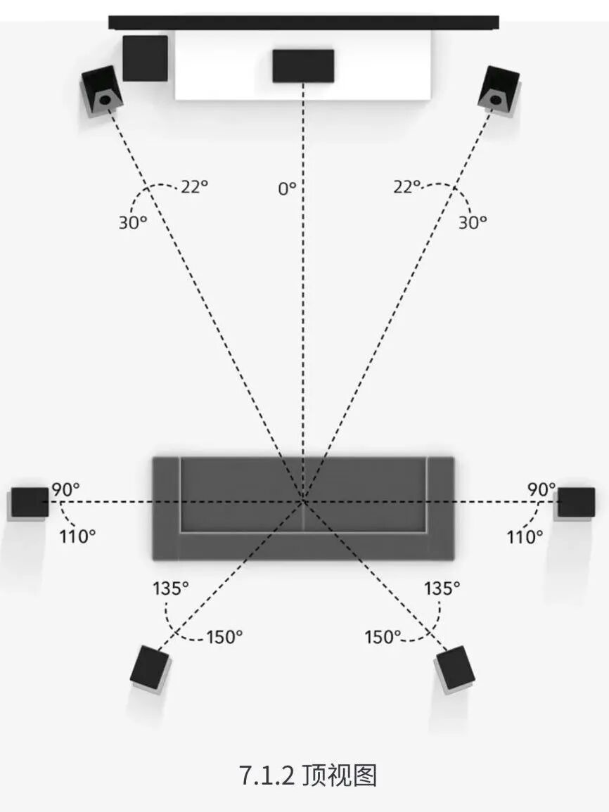 从布局图来看,在沙发靠墙情况下,7.1.2的后环绕音箱并没有位置可以摆放。