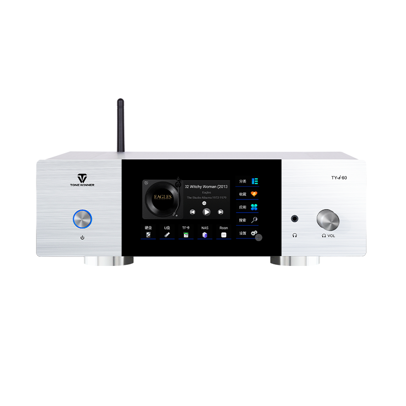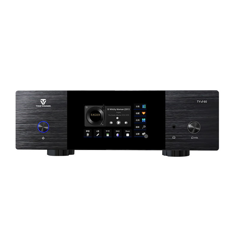 产品简介:TY-i60是我司集30多年高保真设计经验及技术沉淀,契合消费者对高品质无损数字音乐的极致追求,鼎力打造的一款Hi-End数字播放器。 本产品集数字播放器、流媒体音乐中心、解码器、前级、耳机放大器、数字界面于一身,能对高规格DSD等多种数字音乐进行母带级还原!音色细腻明晰,电路成熟稳定,用料优质精良